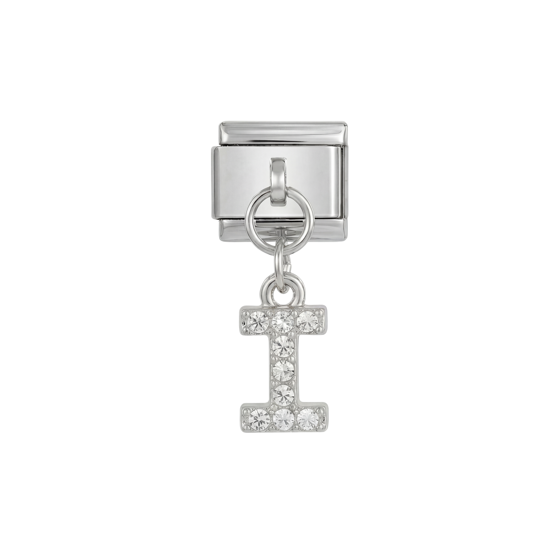 Letter I with stones, Hanging, on Silver